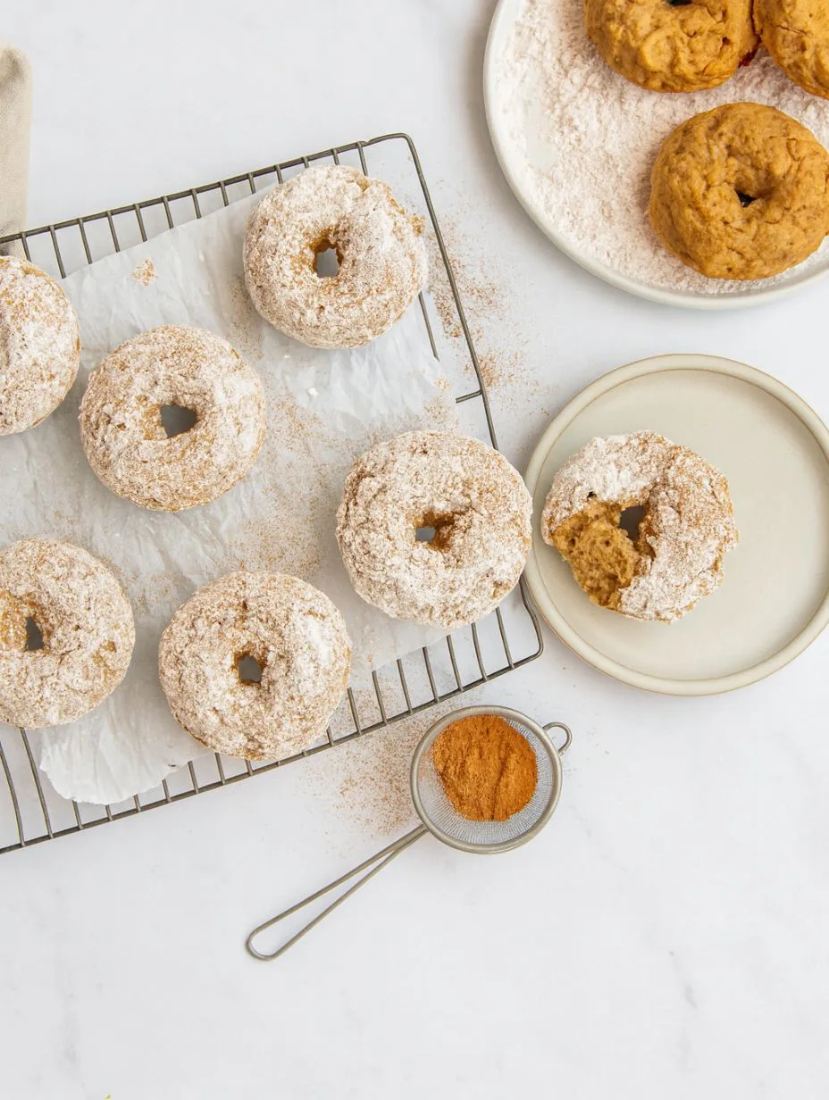 These soft, baked donuts bring cozy apple pie flavor in a better-for-you form. Made with applesauce, cinnamon, and protein powder, they’re a warm treat without the extra sugar. The texture is moist, the sweetness is just right, and they pair perfectly with a hot cup of tea or coffee.