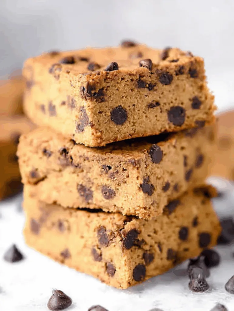 Golden and loaded with gooey chocolate chips, these blondies are chewy in the center and crisp on the edges. They’re made with protein powder and almond flour, which gives them that classic cookie bar vibe with a protein boost.