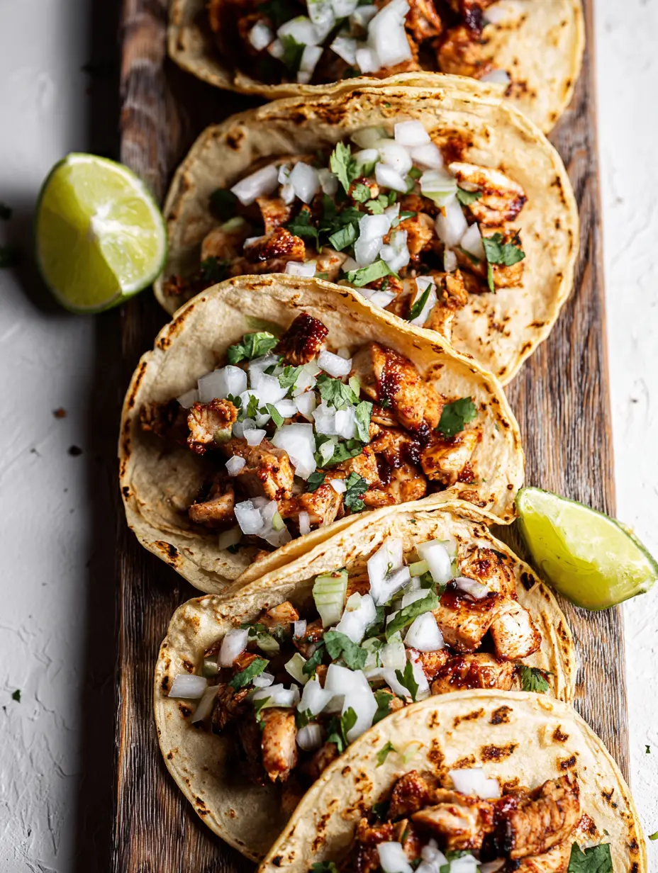 Juicy chicken thighs coated in a bold spice rub, served in warm corn tortillas with a fresh onion-cilantro topping. An easy, flavor-packed dinner for taco night!