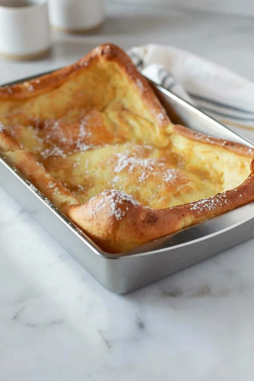 A standard 9×13-inch metal baking dish works perfectly. For thicker pancakes, use a smaller pan, but extend baking time slightly. Individual servings bake beautifully in 6-ounce oven-safe ramekins.
