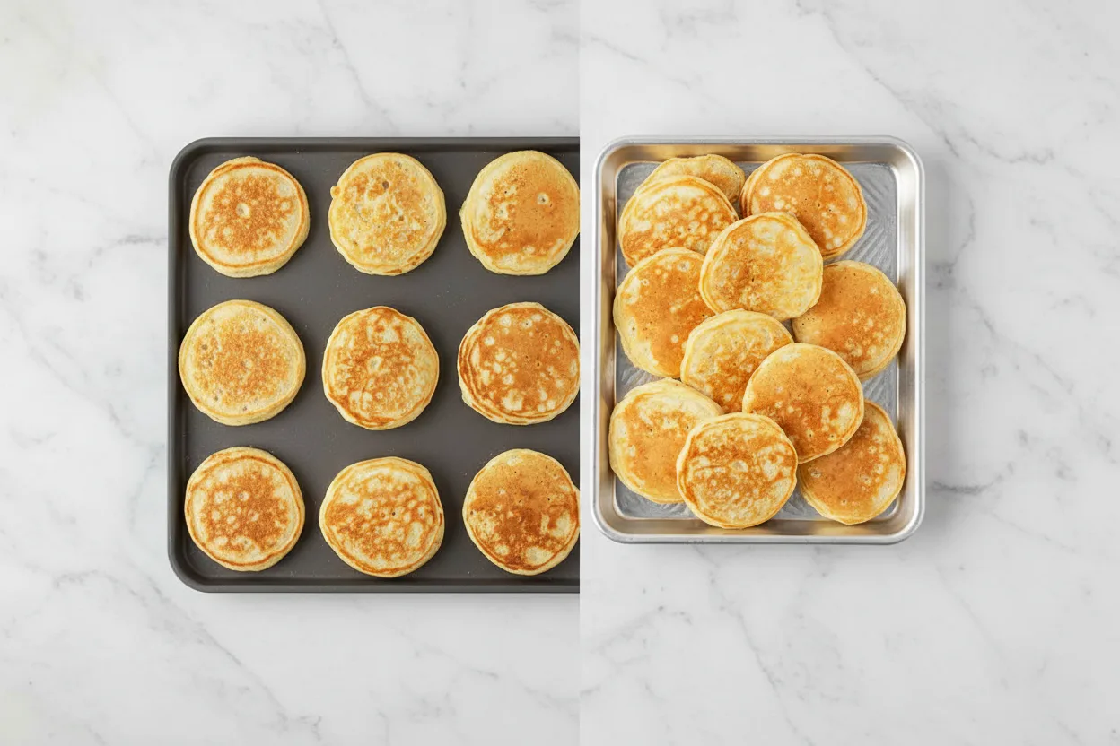 - Keep cooked pancakes warm in 200°F oven while cooking remaining batter