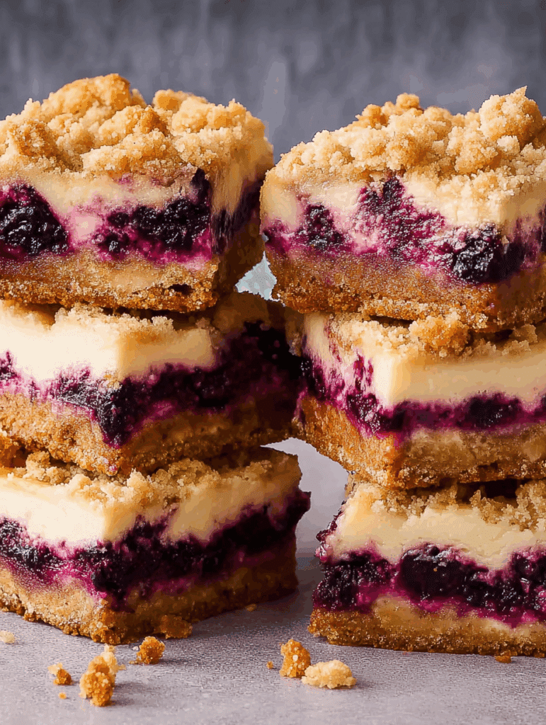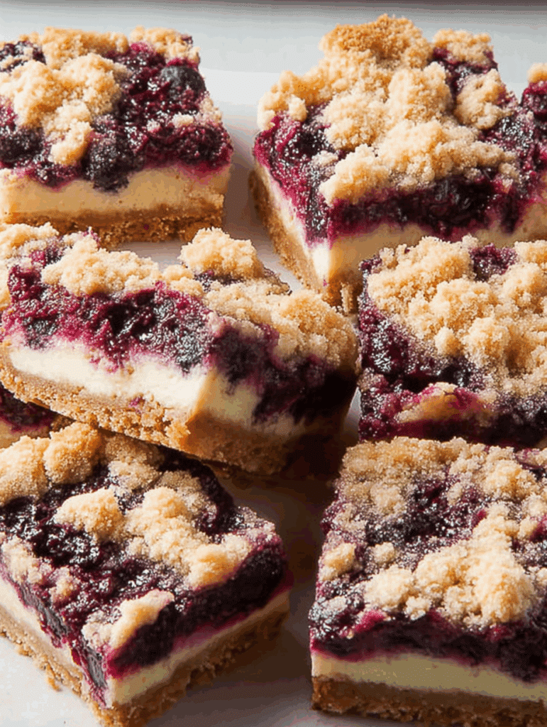 These blueberry crumble cheesecake bars combine a crunchy crust, creamy cheesecake filling, juicy blueberries, and a sweet crumble topping. Perfect for parties, picnics, or a quick family dessert.