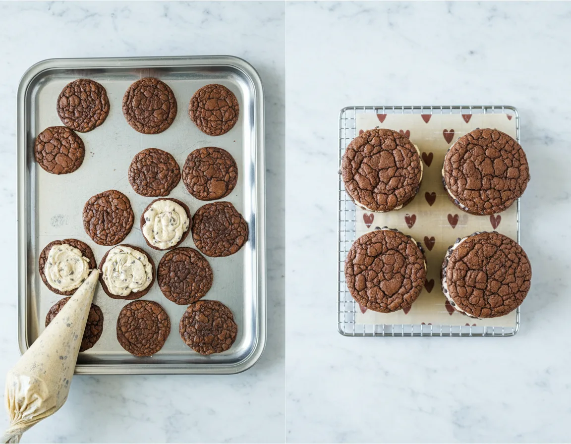 Follow these straightforward steps to create your decadent sandwich cookies. We’ve split the process into three manageable phases: cookies, frosting, and assembly.