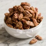 Sweet and crunchy candied pecans with cinnamon sugar coating – perfect for snacks, gifts, or salad toppings.