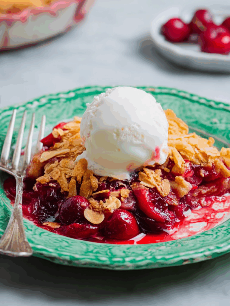 The warm cherry filling pairs beautifully with cold toppings. If you’re serving it at a gathering, set up a quick topping bar so guests can customize their bowls.