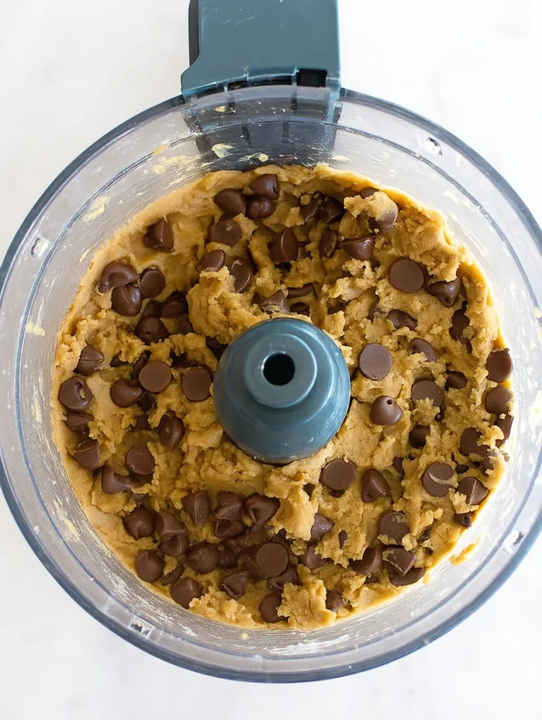 - Add all ingredients, except chocolate chips, to a food processor and blend until completely smooth