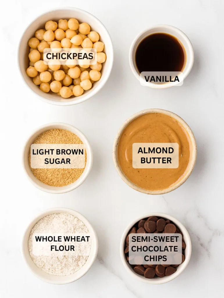 If you’re raising an eyebrow at the idea of chickpeas in your blondies, stay with me. When blended smooth, canned chickpeas create a thick, creamy base that gives these blondies the perfect soft, dense texture. No weird taste. No funky after-bite. Just melt-in-your-mouth goodness with a boost of plant-based protein.