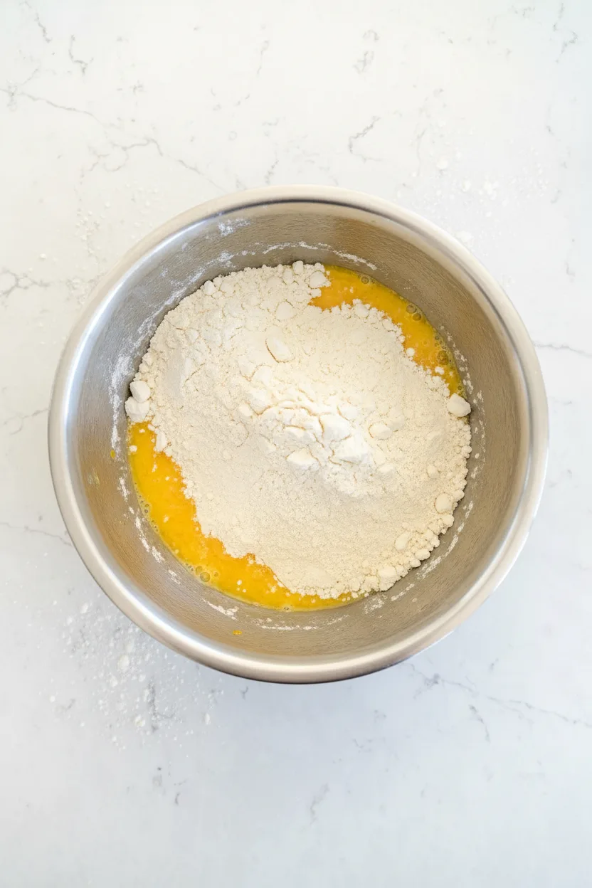 - Add the melted butter, oil, and lemon juice. Mix to combine, then add the egg and vanilla.
