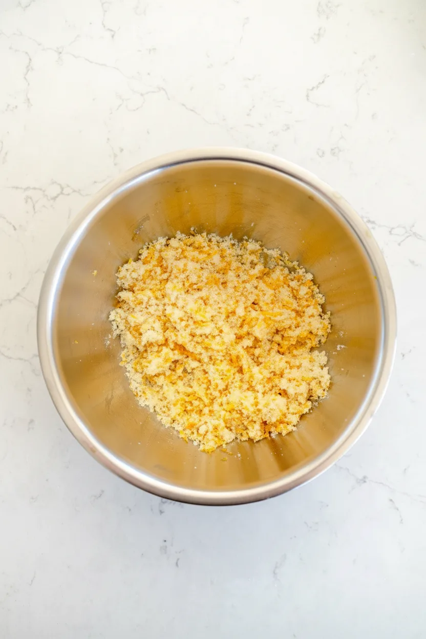 Place the granulated sugar and fresh lemon zest in a medium bowl. Use your clean fingers to rub the zest into the sugar. Rub for about a minute until the sugar feels moist, looks pale yellow, and smells intensely lemony. This step releases the lemon oils and infuses the sugar with incredible flavor.