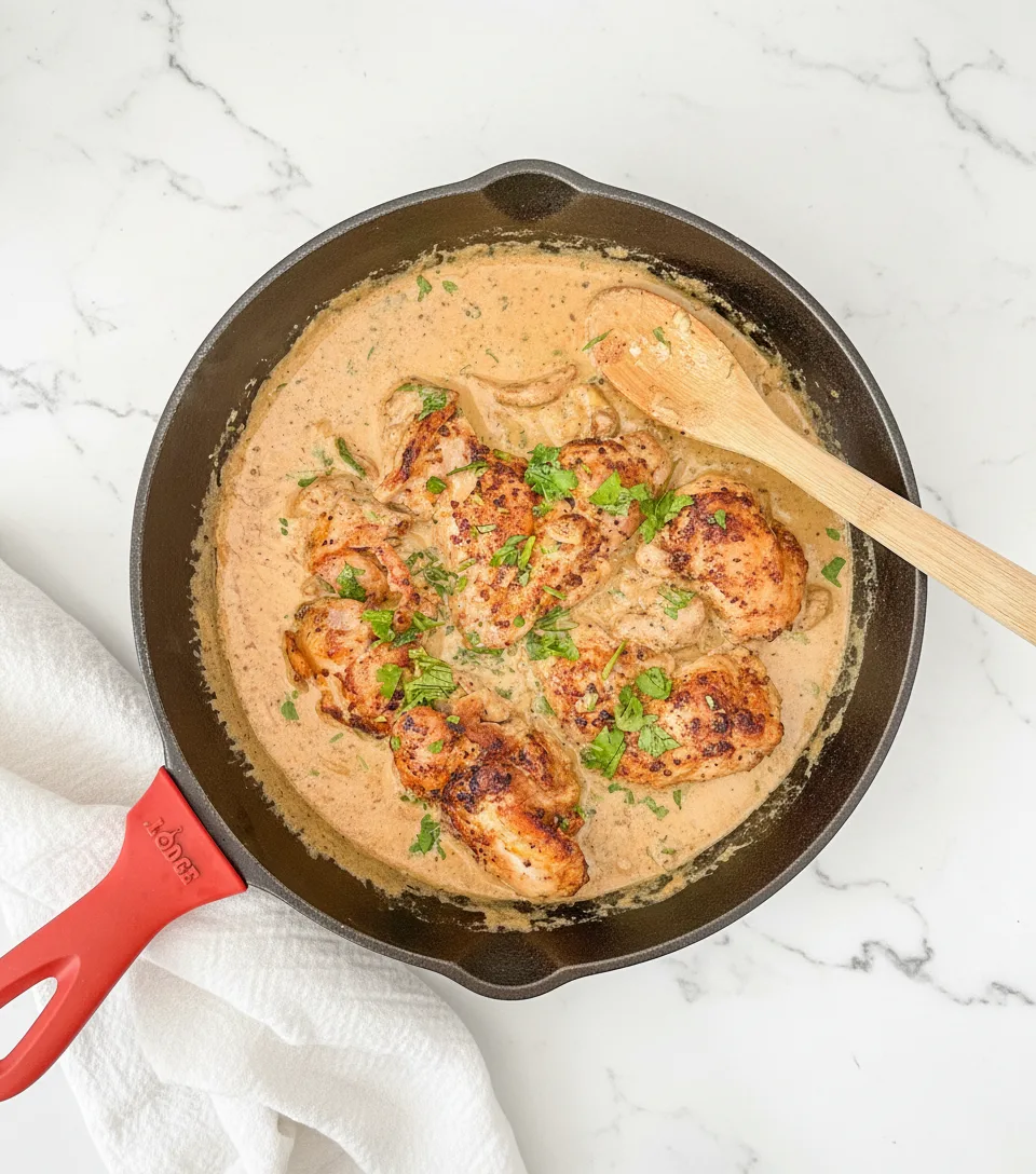 Tender chicken thighs in a rich, creamy garlic and herb sauce, ready in just 20 minutes for a satisfying weeknight meal.