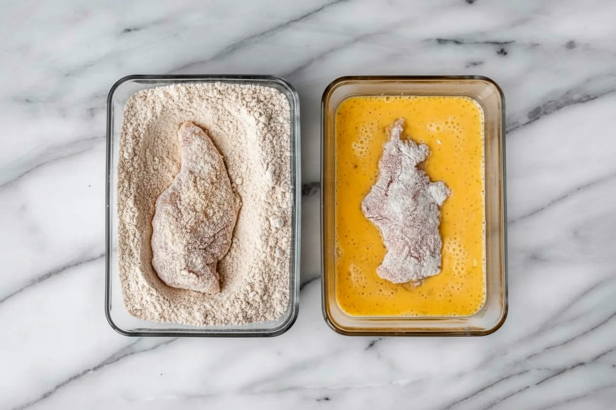 Combine flour and seasonings in your first shallow dish. Whisk eggs in a second bowl. Line up your stations: dry-wet-dry for efficient breading. This setup prevents cross-contamination and keeps your workspace tidy.