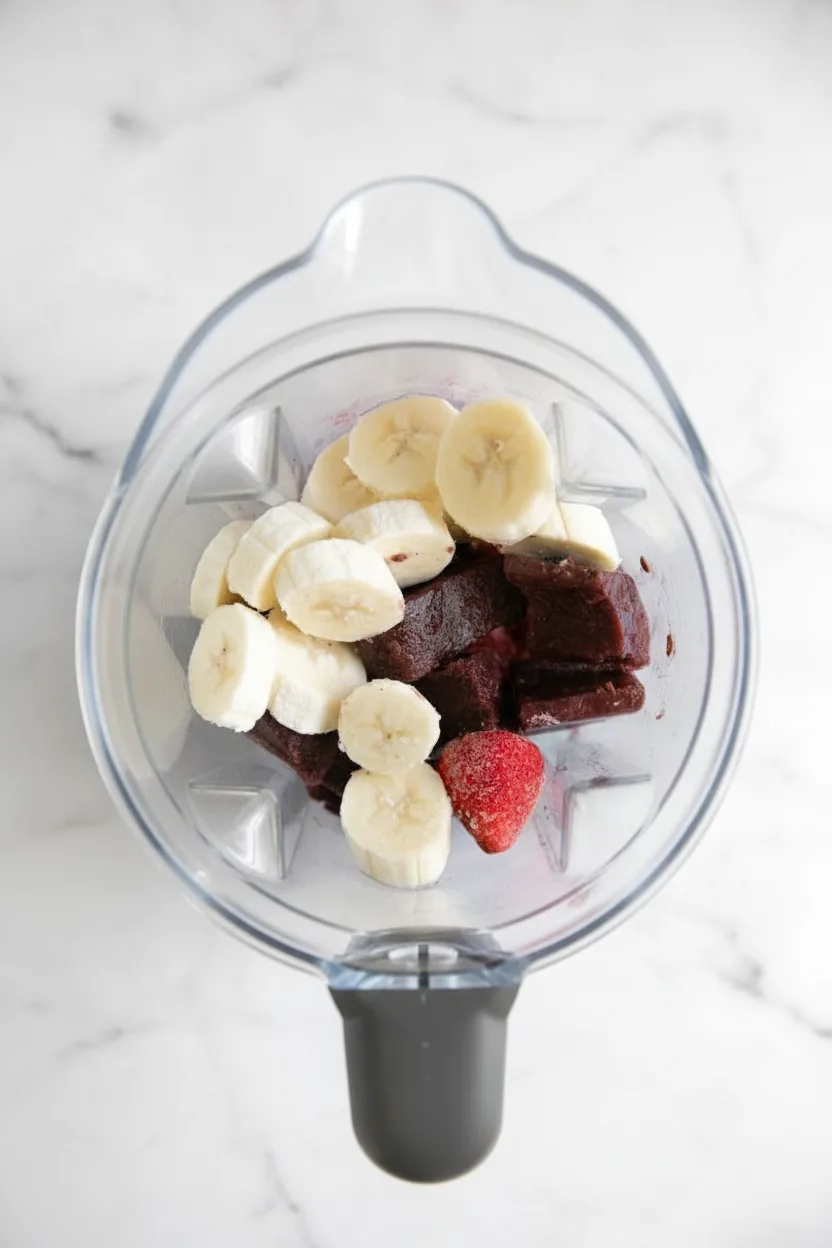 Add milk and yogurt to your blender first, followed by frozen fruits and broken acai pieces. Start blending on low speed using the tamper to press ingredients toward the blades. Gradually increase speed only if needed, adding tiny amounts of liquid if mixture gets stuck.