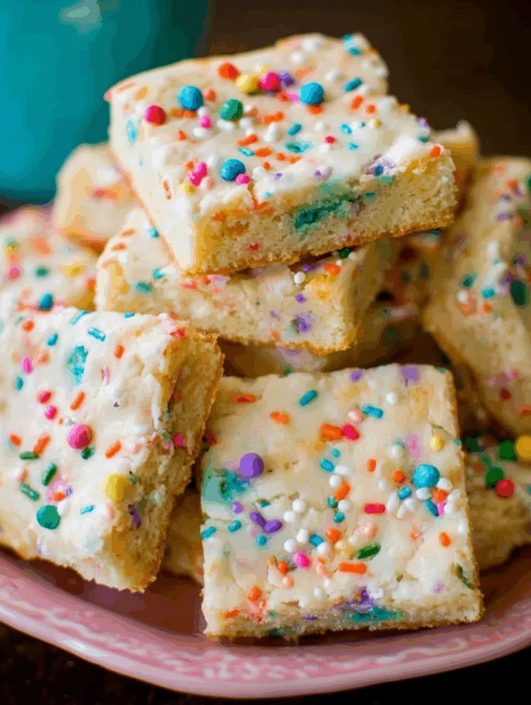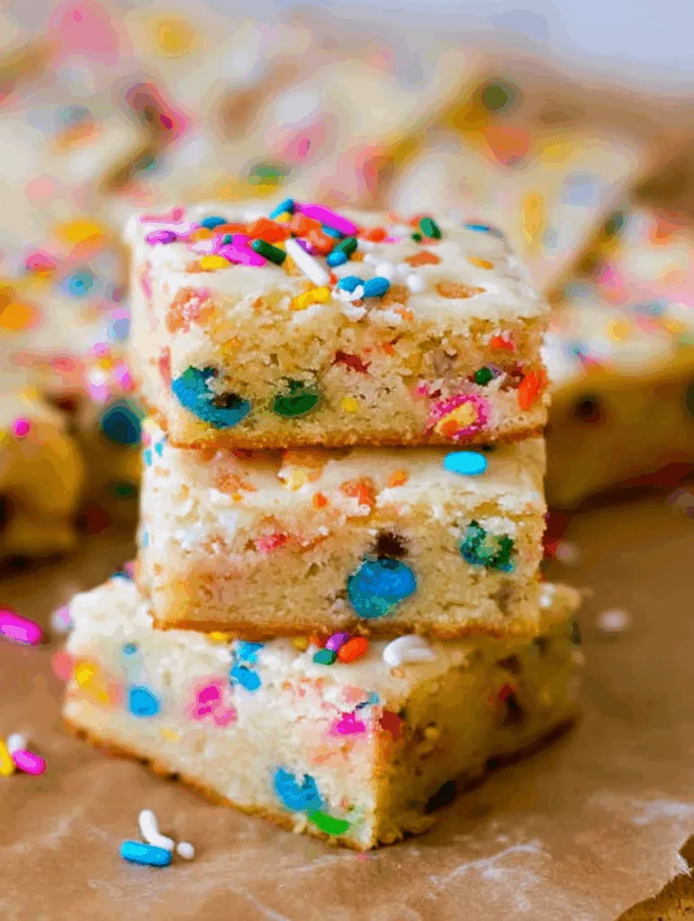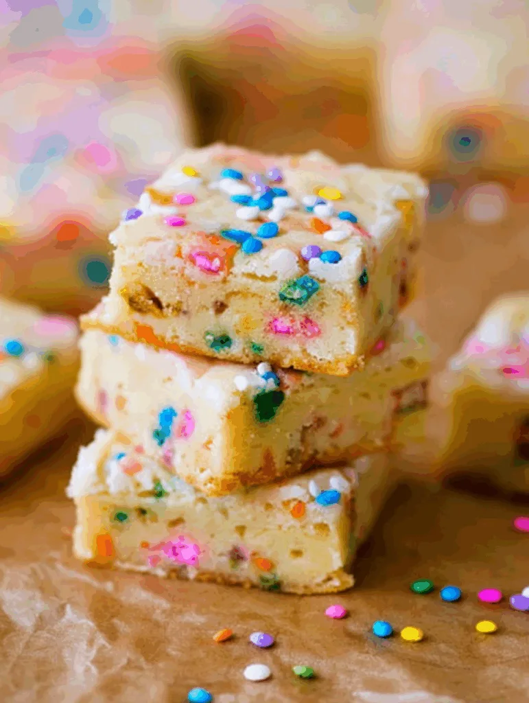 There’s something nostalgic and playful about cake batter blondies that makes them impossible to resist. These bars are soft in the center, lightly crisp on the edges, and bursting with that familiar cake mix flavor.