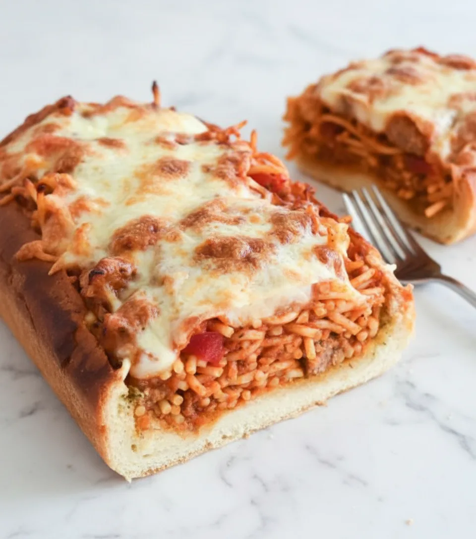 Imagine savory spaghetti tucked inside crispy garlic bread bowls and topped with bubbling cheese.