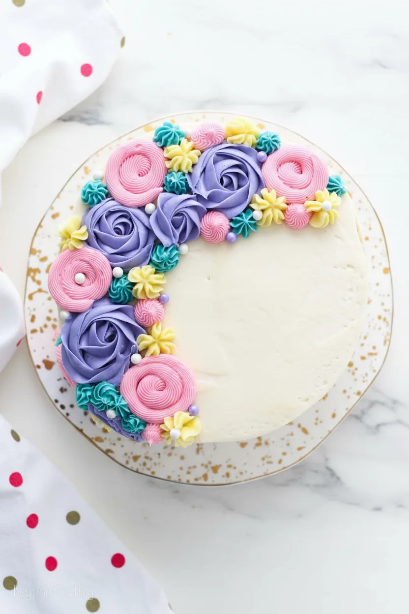 - Chill for Clean Lines: If your kitchen is warm, chill the frosted cake for 15 minutes before piping the flowers. This helps the buttercream set, giving you sharper definition.