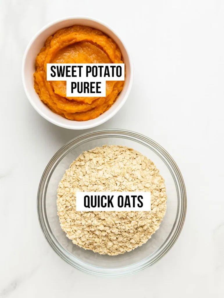 - In a large bowl, mix sweet potato puree and oats until evenly combined.