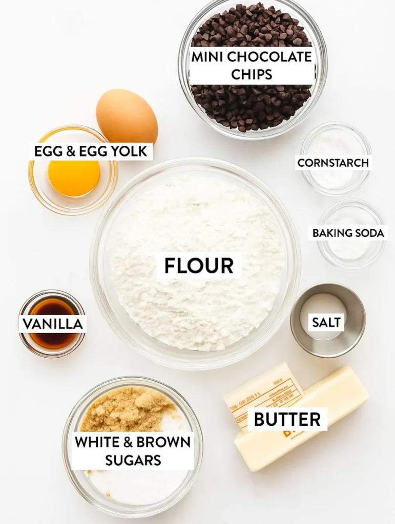 The magic starts with a little cornstarch, it’s your secret weapon for that pillowy, melt-in-your-mouth texture. It keeps each cookie tender even after hours in the freezer. The combination of brown sugar and an extra egg yolk adds flavor depth and moisture, keeping those cookies soft enough to bite through without cracking your frozen masterpiece.