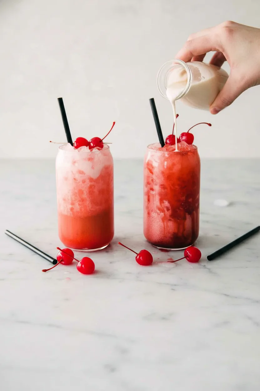 Drizzle heavy cream or dollop freshly whipped cream over the sparkling surface. Watch it float like a delicate cloud before garnishing with cherries or citrus twists. Insert a long spoon or straw for stirring just before drinking to integrate the layers while maintaining effervescence.