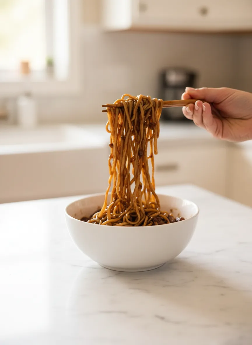 This Korean black bean noodle recipe delivers restaurant-worthy flavor with home kitchen simplicity. Bold, savory sauce clings perfectly to vegetables and noodles for ultimate comfort food satisfaction.