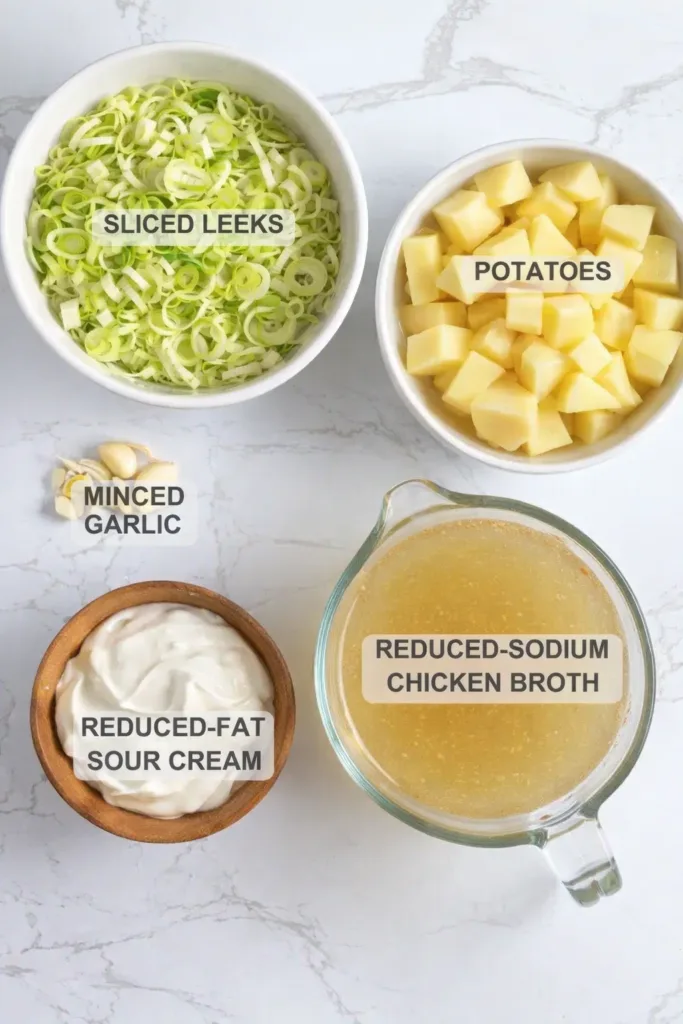 With just seven core components plus basic seasonings, this soup proves delicious food doesn’t require complicated shopping lists. Leeks form the aromatic base while potatoes provide that signature velvety texture. Reduced-fat sour cream adds the perfect tangy finish without overpowering other flavors.