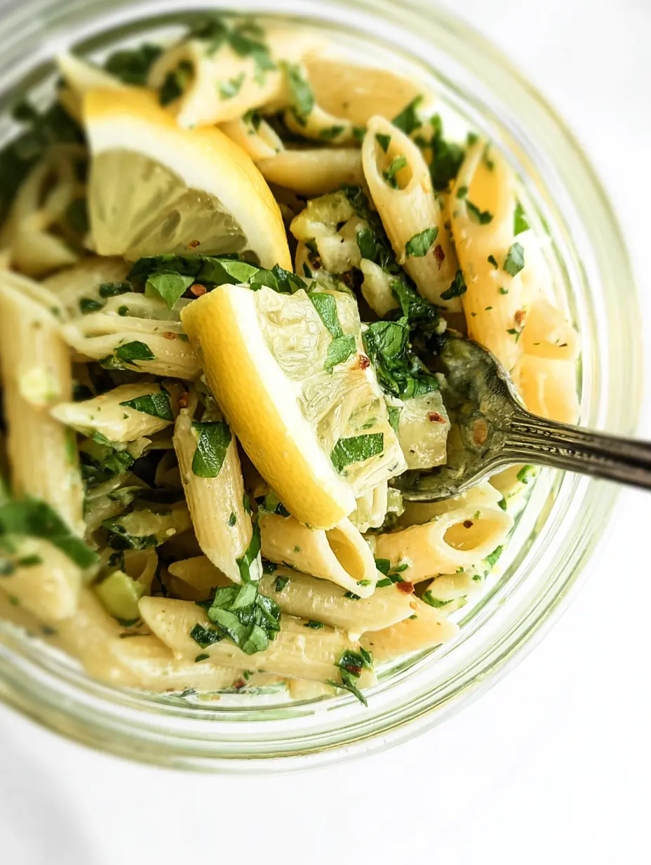 A refreshing and creamy pasta salad featuring a vibrant lemon basil dressing, toasted pine nuts, and aged cheese. Perfect for summer dinners and potlucks.