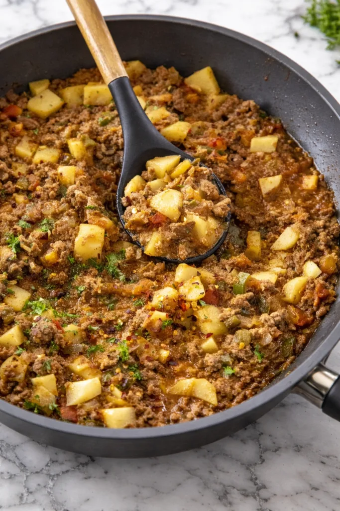 This Mexican Picadillo recipe offers everything you want in a weeknight meal – quick preparation, bold flavors, and satisfying textures. Its combination of tender potatoes, savory beef, and aromatic spices creates a comforting dish that transports your taste buds south of the border.
