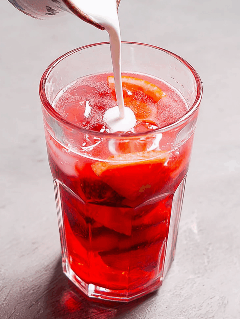 Start by steeping hibiscus tea until it’s rich and colorful. Let it cool to room temperature before mixing, so the ice doesn’t melt too fast. In a shaker, combine the tea with sliced strawberries, grape juice, coconut milk, and simple syrup. Shake it hard with ice until the outside of the shaker feels frosty. Pour into a tall glass, and you’ve got your very own pink drink Starbucks style.