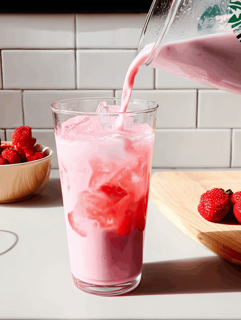 Hibiscus tea gives the pink drink its signature color and tangy bite. It’s the base that balances out the sweetness of the fruit and juice. Coconut milk adds the creamy swirl that makes the drink stand out compared to other iced Starbucks drinks. This duo creates the refreshing taste people crave, with no need for complicated Starbucks drinks recipes.