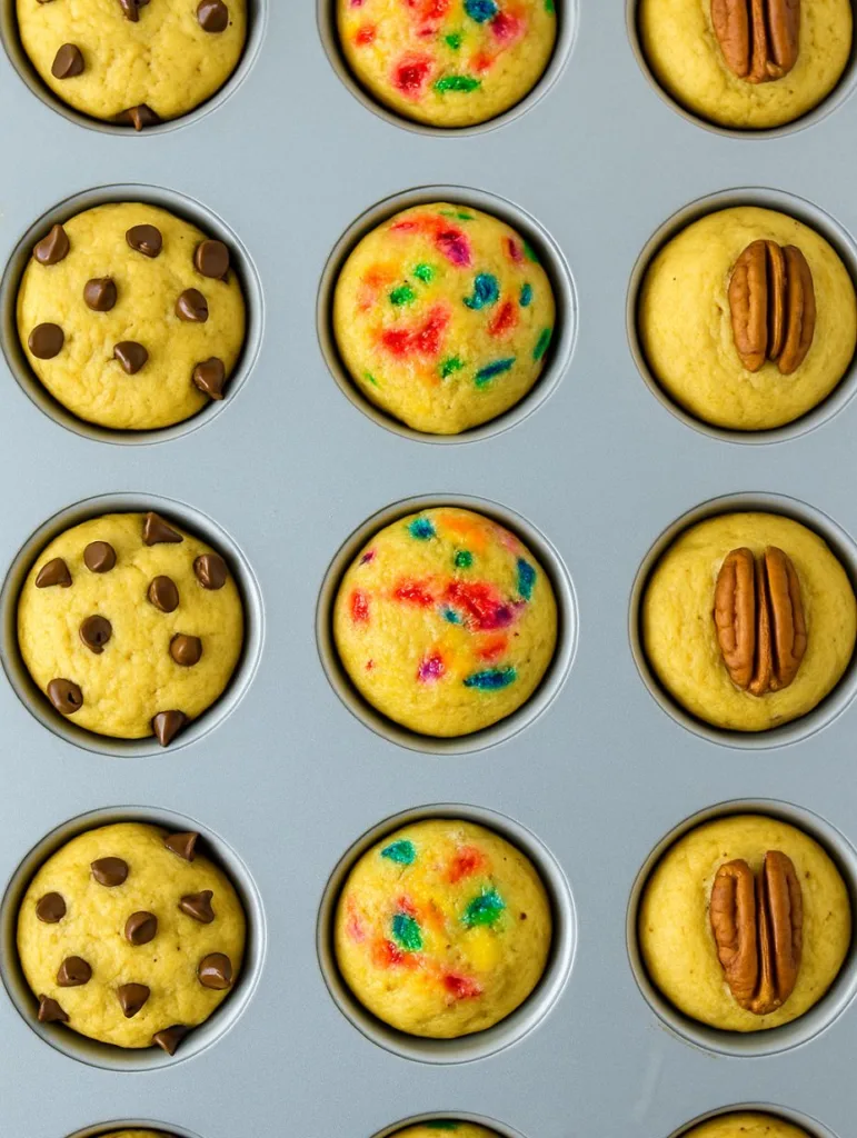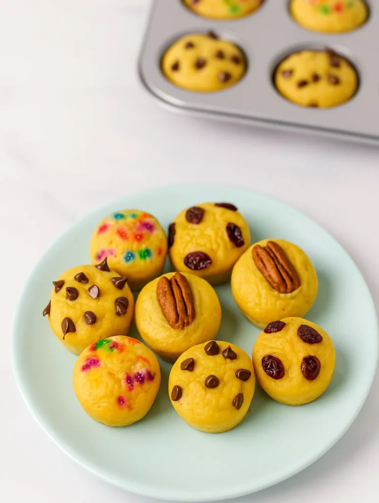 Lightly grease a mini muffin pan, spoon in your batter, top as you wish, and let the oven take over. Seven minutes later, you’re rewarded with golden-topped perfection, crisp edges, tender centers, and the aroma of a cozy café.