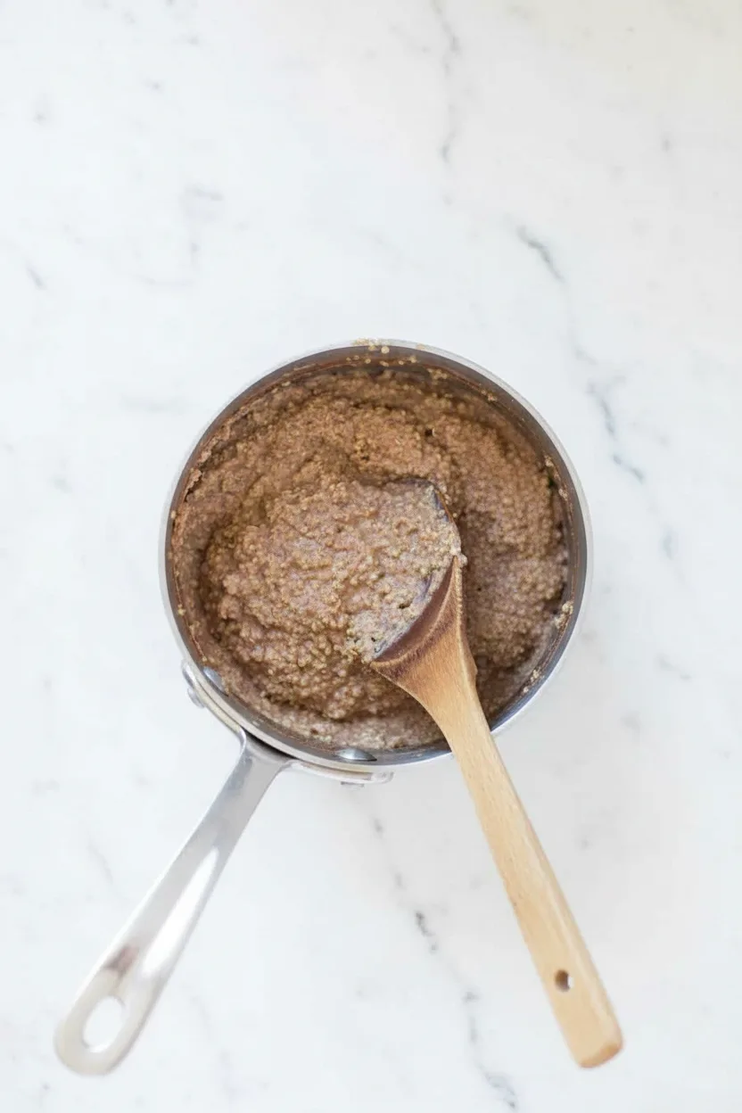 2. Remove pan from heat. Stir in almond butter and maple syrup until fully incorporated