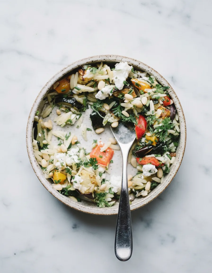A comforting, vegetable-packed orzo dish that caramelizes roasted vegetables for a creamy, flavorful main course.