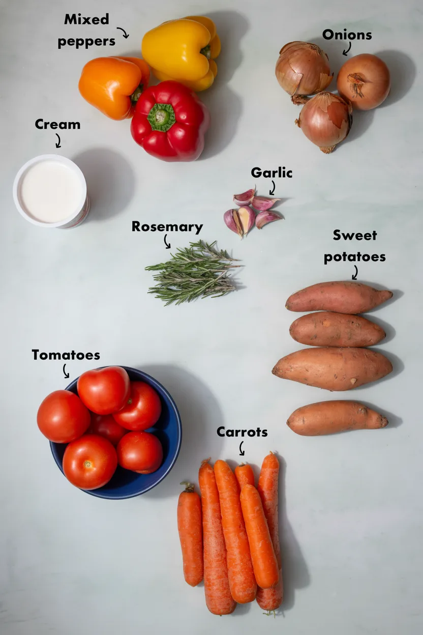 Discover the magic of roasted veggies transformed into velvety comfort food. This creamy roasted vegetable soup delivers deep flavors from oven-kissed produce blended to perfection.