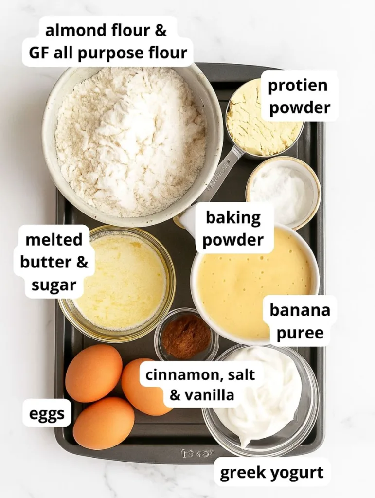 When it comes to adding protein to banana bread, balance is everything. You want ingredients that add structure and nutrition, without drying out the crumb. Here’s how this recipe does it: