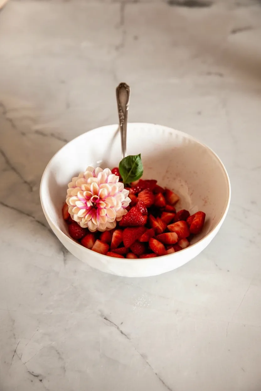- Line a baking sheet with parchment paper. Toss together the strawberries and 1/4 cup sugar in a bowl. Let sit for 15-30 minutes to release juices.