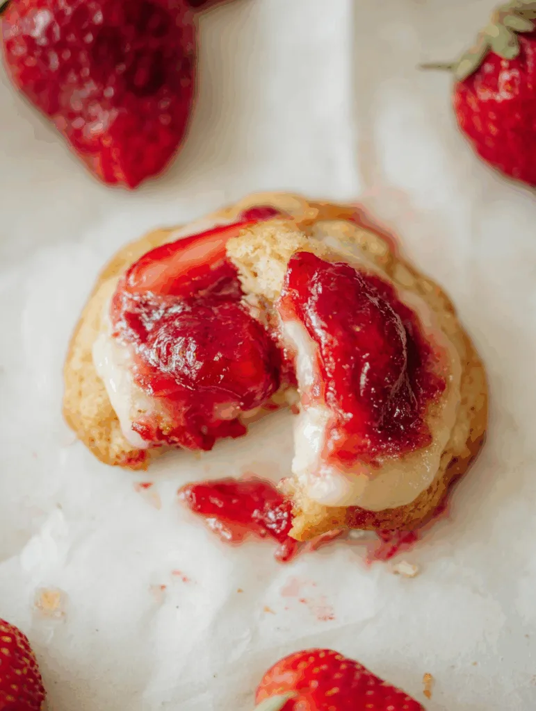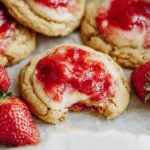 Strawberry Cheesecake Cookies with a rich cream cheese center and a sweet strawberry topping. Soft, chewy, and perfect for celebrations or everyday baking.
