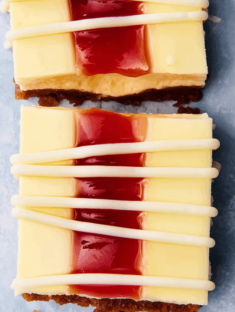 If you enjoy easy recipes like the No Bake Cannoli Delight Recipe, these cheesecake bars offer a satisfying baked alternative with the same visual charm.