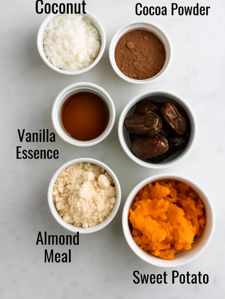 Sweet potato truffles might sound fancy, but they’re surprisingly simple to make. You only need six ingredients: sweet potato, Medjool dates, almond meal, cacao powder, vanilla, and coconut. These are pantry staples in many homes. When you mix them together, they create chewy, chocolatey treats with no added sugar. That natural sweetness comes entirely from the sweet potato and dates. No syrups or refined sweeteners are needed.
