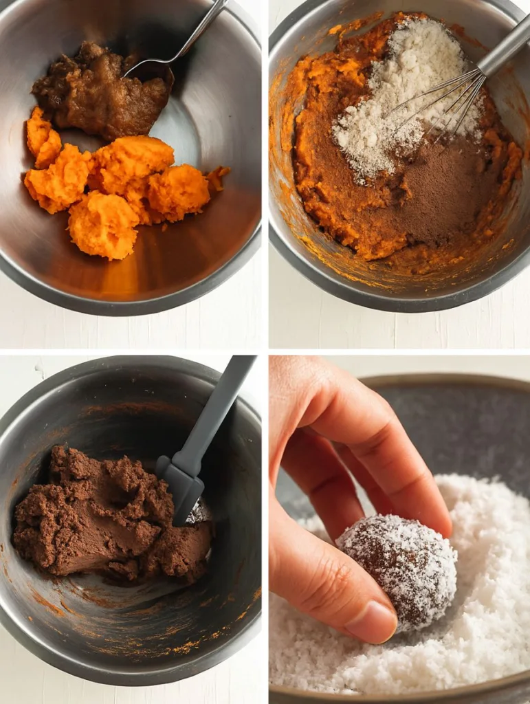 Getting the perfect truffle consistency is all about balancing moisture. The sweet potato should be soft but not watery. After boiling or baking, mash it until smooth and thick. If the mixture feels too wet after combining with the dates, just add a little more almond meal until it firms up. On the flip side, if it feels too dry and crumbly, a small splash of water or more date paste can fix it fast.