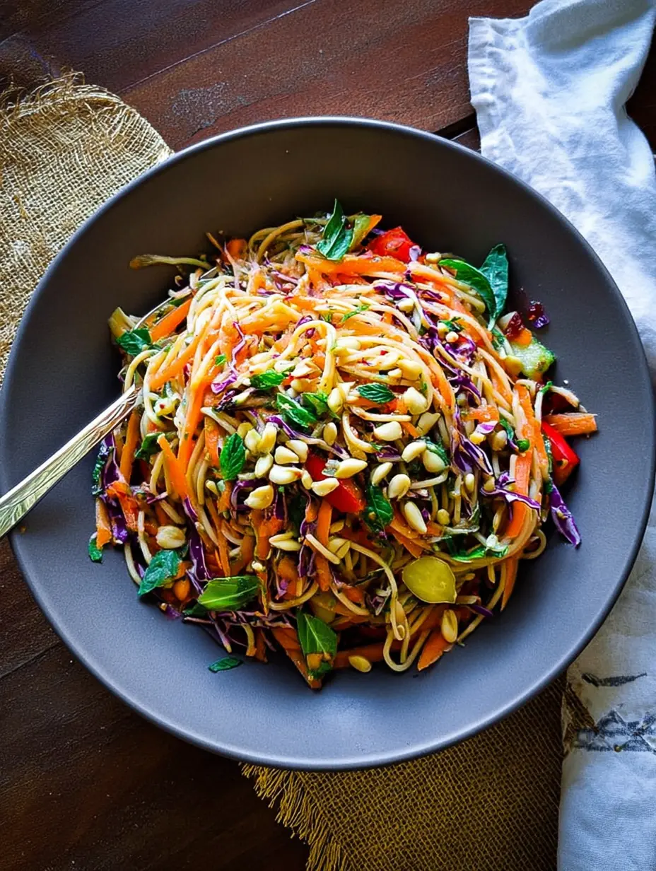 This Thai Spaghetti Salad is not only delicious but also offers a balanced nutritional profile. The exact values can vary based on specific ingredients and substitutions used.