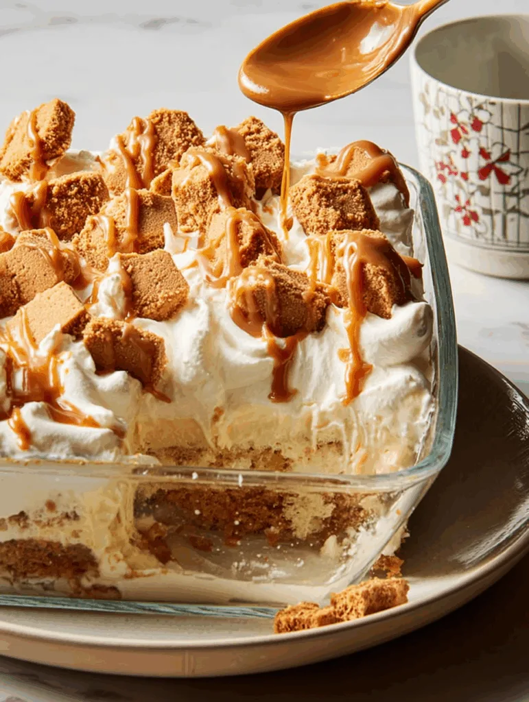 A twist on the classic, this tres leches cake is soaked in three kinds of milk and topped with a fluffy whipped finish. But the real magic is in the spiced cookie topping. Biscoff adds a warm, caramel crunch that’s perfect for fall gatherings and cozy plates.