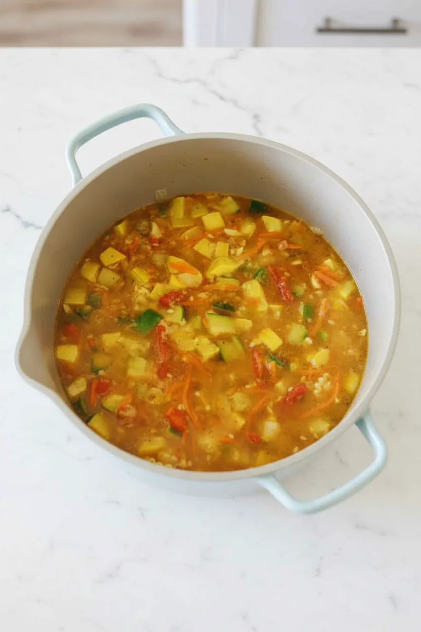 This vibrant recipe packs colorful vegetables like zucchini, squash, and carrots into every spoonful. The rich broth gets depth from sun-dried tomatoes and Italian seasoning, while tender pasta pieces recreate the lasagna noodle experience.